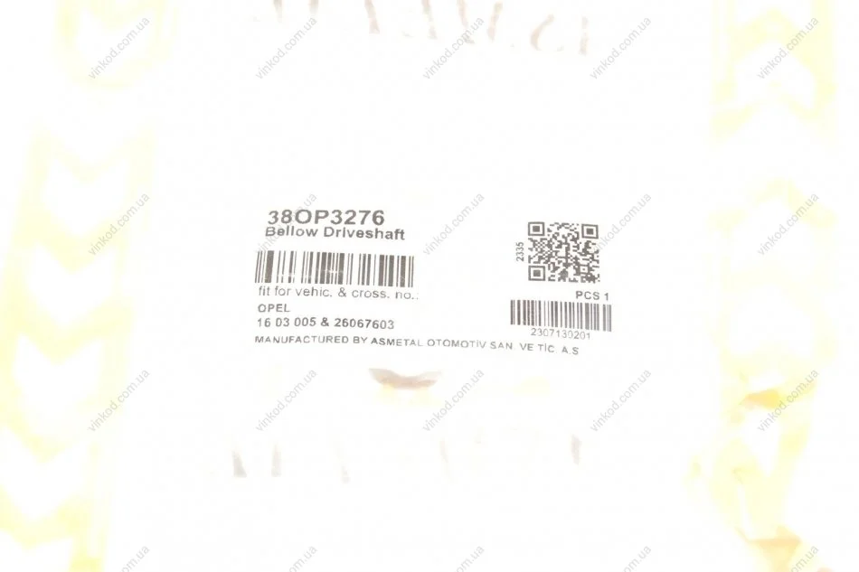 Комплект пильника РШ шарніра ASMETAL 38OP3276