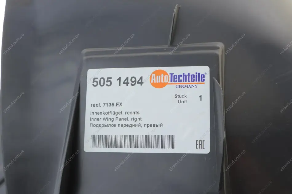 Підкрилок передній, правий AUTOTECHTEILE 505 1494