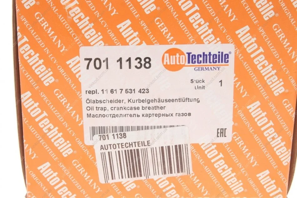 Масловідокремлювач системи вентиляції картерних газів AUTOTECHTEILE 701 1138