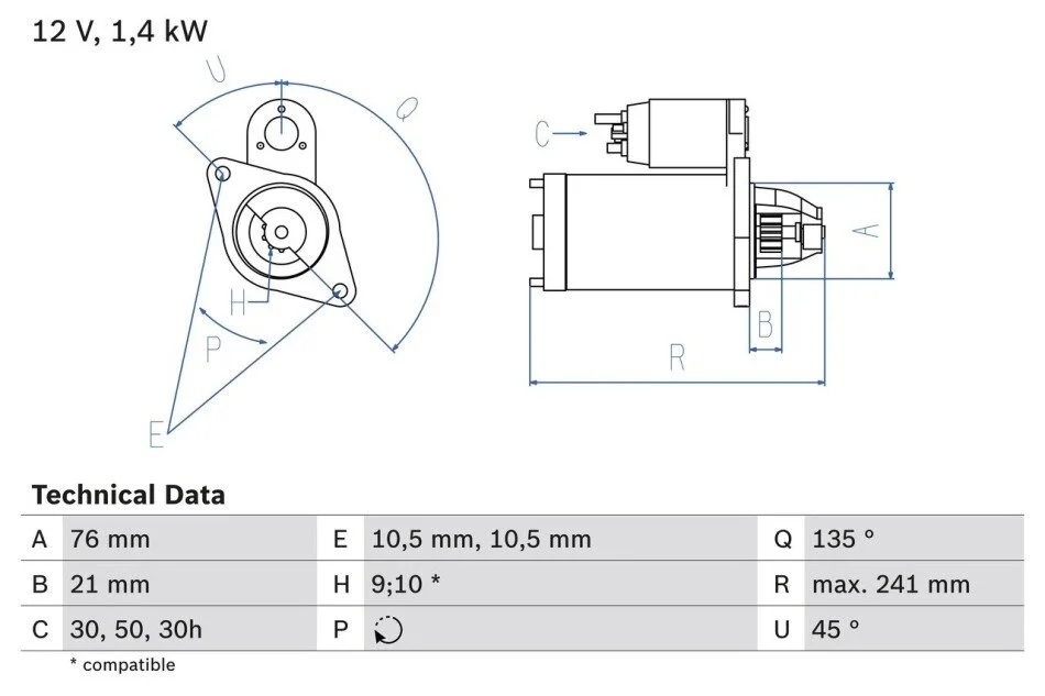 - Мощность стартера [кВт]