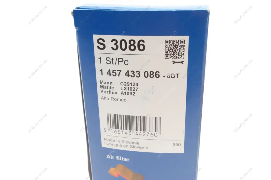 Фильтр воздушный Alfa Romeo 147 1.9 Jtd 01-10 BOSCH 1 457 433 086