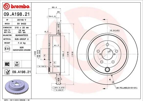 Тормозной диск BREMBO 09.A198.21