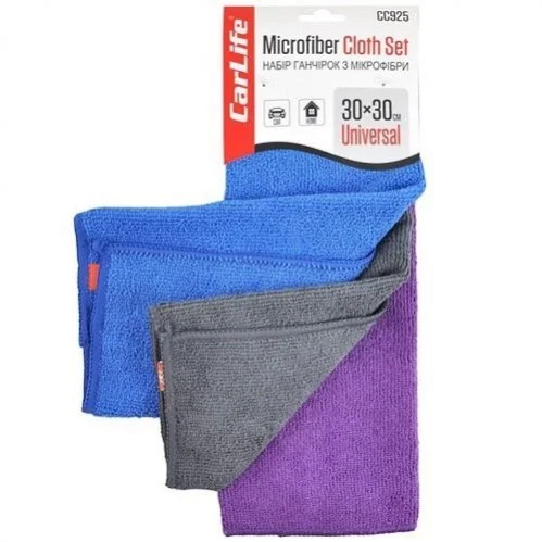 Тряпка из микрофибры универсальная, 30х30 см. набор 3шт (серая, синяя, фиолетовая)) CarLife CC925