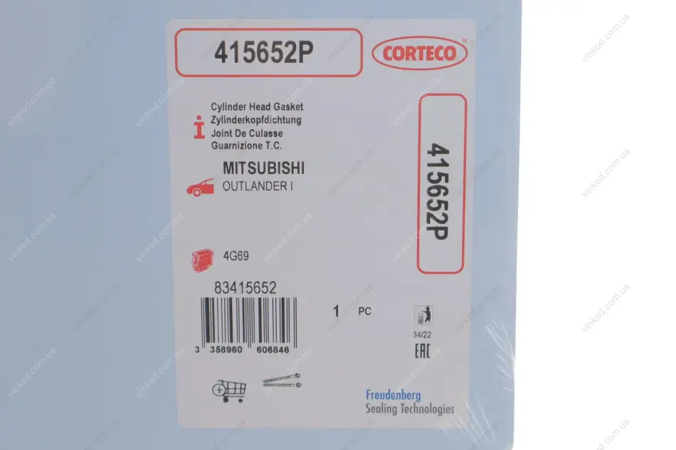 Прокладка ГБЦ MITSUBISHI OUTLANDER I 2.4 03.01-09.07 CORTECO 415652P