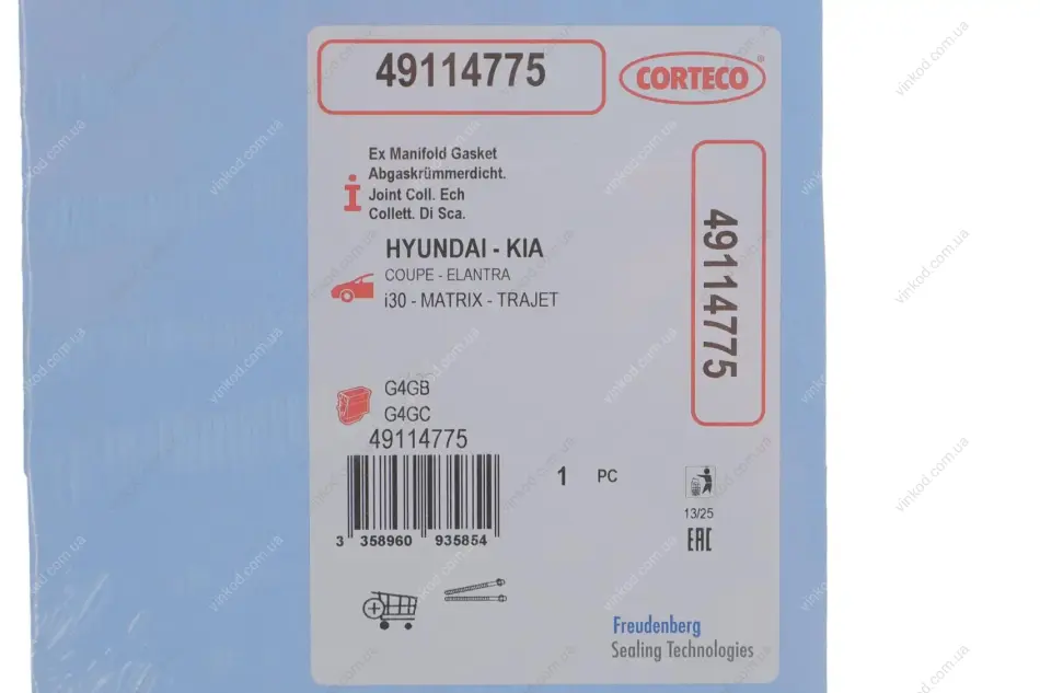 Прокладка колектора випускного CORTECO 49114775