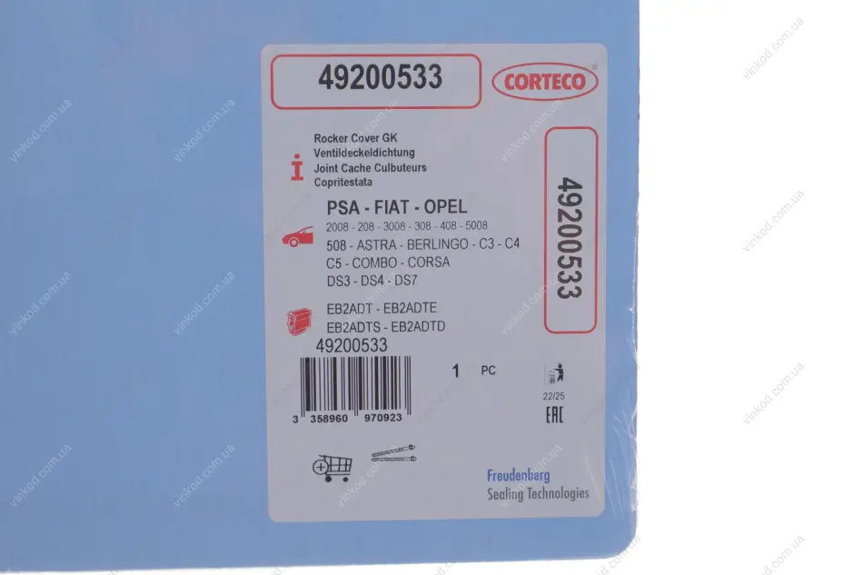 Прокладка pokr.zaw. CI/FI/PE/JEEP/OP/DS/TOYOTA CORTECO 49200533