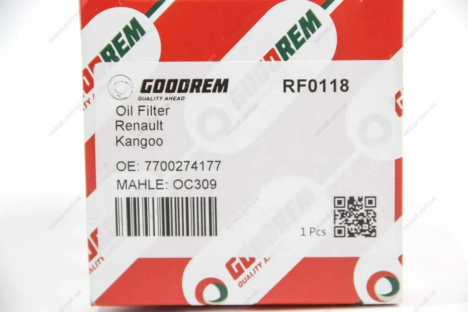 Фільтр масла Kangoo 1.9D/1.5dCi/1.4i/1.6i/Trafic/Vivaro (низький) GOODREM RF0118