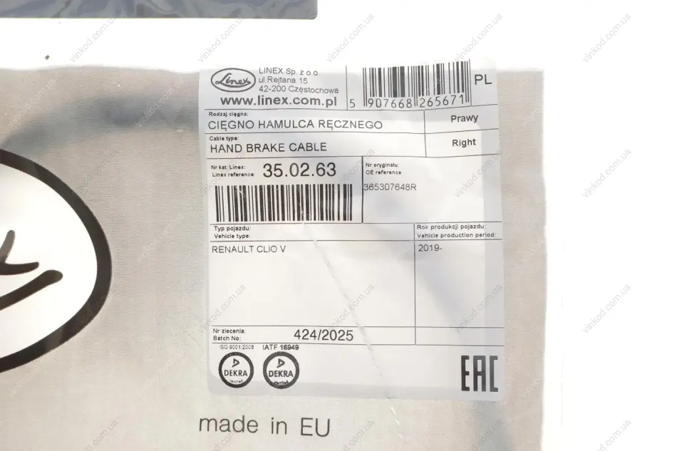 Трос ручного гальма LINEX 35.02.63