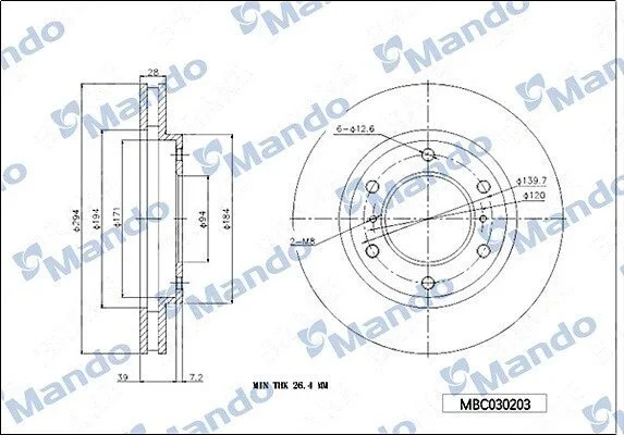Диск тормозной MANDO MBC030203