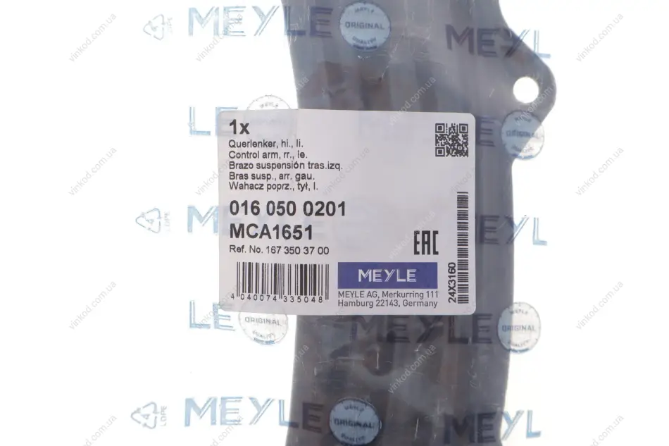 Важіль підвіски,задня вісь Лів (верх, задн, поздовжній) MERCEDES GLE (C167), GLE (V167), GLS (X167) 2.0D-4.0H 10.18- MEYLE 0160500201
