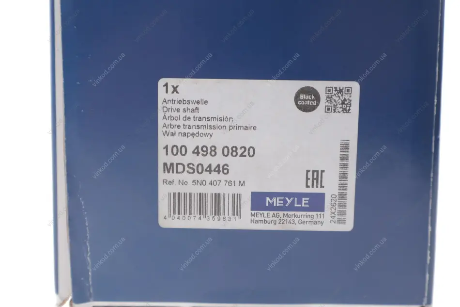Привідний вал передн Лів 566мм AUDI Q3, VW TIGUAN 2.0/2.0D 09.07-10.18 MEYLE 1004980820