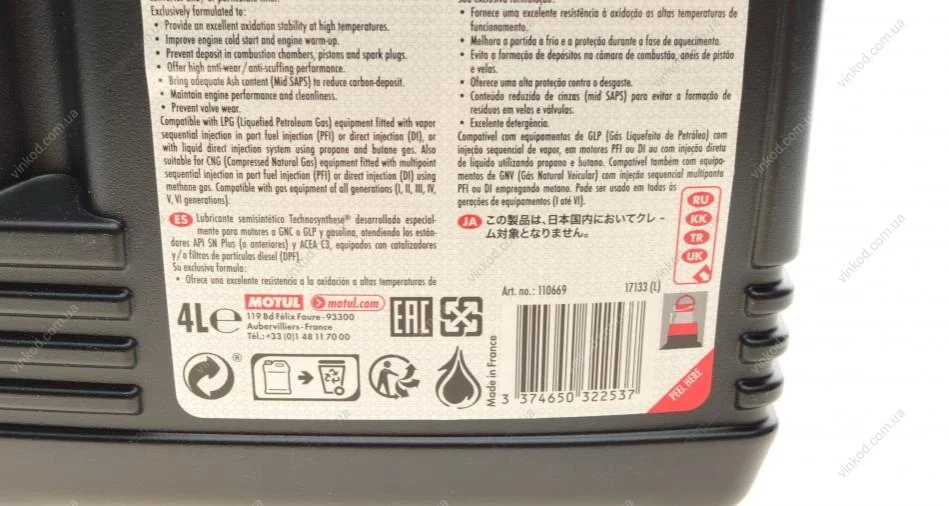 Масло 5W40 MOTUL 854654