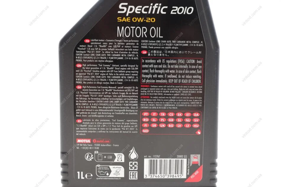 Олива моторна 100% синтетична д/авто /Specific 2010 SAE 0W20 (1L)/112767 MOTUL 867611