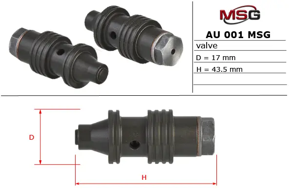 Клапан насоса ГУР VW PASSAT B5 96-05; AUDI A6 94-04, A8 94-02, 80 78-95, A4 95-01; MERCEDES-BENZ Sprinter 901-905 95-06, E-Class W124 84-95, MB100 88-92; BMW 3 E36 93-99, 3 E30 81-94; OPEL Omega B 93-03 MSG AU001VALVE