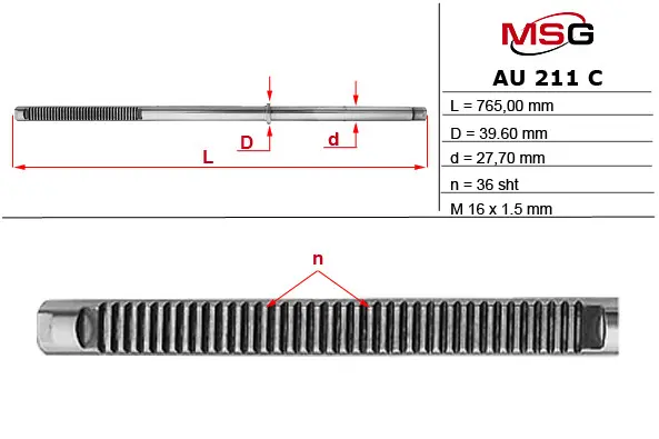 Шток рульової рейки з ГПК SKODA SUPERB I (3U4) 01-08; AUDI A4 (8D5, B5) 94-01; VW PASSAT B5 (3B6) 00-05 MSG AU211C