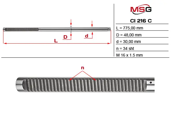 Шток рульової рейки з ГПК PEUGEOT BOXER (ZCT) 99-02; CITROEN JUMPER (244, Z_) 02-06; FIAT DUCATO (250) 06-н.в. MSG CI216C