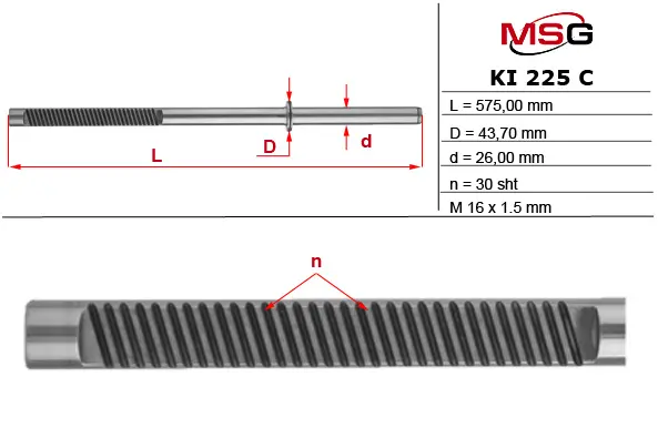 Шток рульової рейки з ГПК новий Hyundai Coupe 02-09, Hyundai Elantra XD 00-06, Kia Cerato 04-08 MSG KI225C