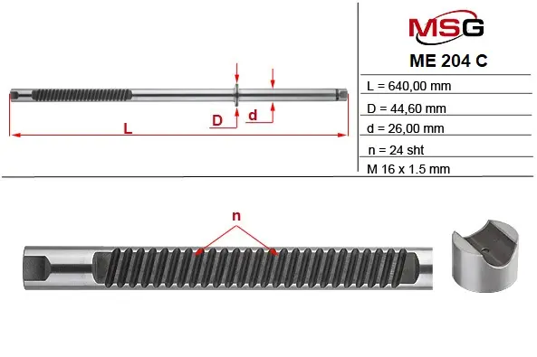 Шток рульової рейки з ГПК MERCEDES-BENZ SLK-CLASS (R171) 04-11,CLK-CLASS (C209) 02-09,CLK-CLASS (A209) 03-10 MSG ME204C