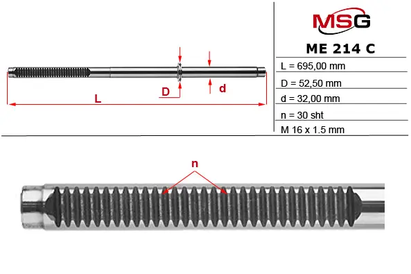 Шток рульової рейки з ГПК MERCEDES-BENZ V-CLASS (638/2) 96-03,VITO (638) 96-03 MSG ME214C