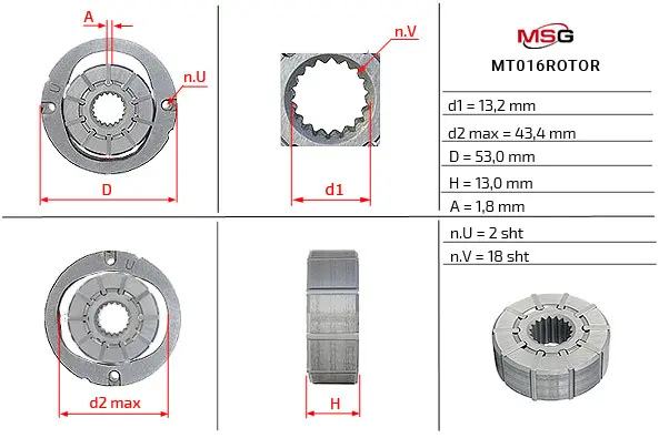 Ротор, статор і пластини насоса ГПК MITSUBISHI GALANT VI (EA_) 96-04,GALANT VI универсал (EA_) 96-03,GRANDIS (NA_W) MSG MT016ROTOR