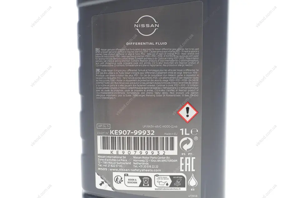 Масло трансмиссионное differential fluid 80w-90, 1л NISSAN KE90799932