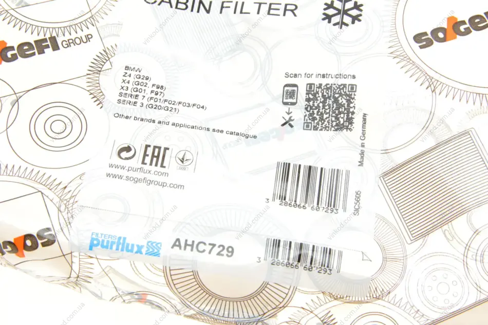 - Purflux AHC729 подходит к маркам/моделям авто: