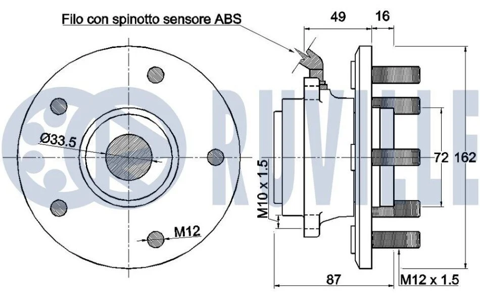 Підшипник маточини (задньої) Dodge Journey/Fiat Freemont 08- RUVILLE 221661