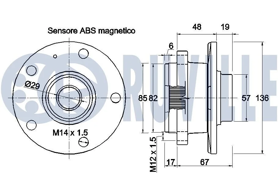 Підшипник ступиці перед. Audi A3 12-// Skoda Octavia 12-// VW Golf VI 11-, Golf VII 13- RUVILLE 221784
