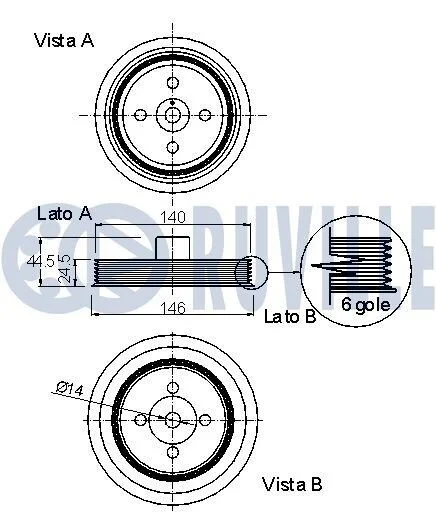 Шків колінвалу Ford Transit Connect 1.8 TDCi 02- (139,4x48.6) RUVILLE 520088