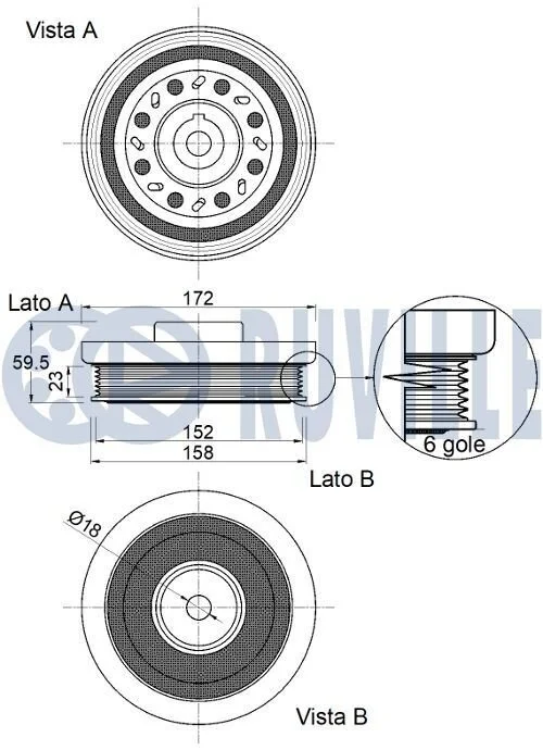 Шків колінвалу Hyundai iX35/Tucson/Kia Sportage 2.0/2.2CRDi 10- (6PK) RUVILLE 520408