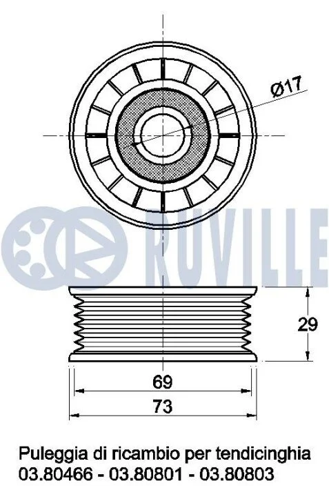 Ролик генератора Ford Focus/Fiesta/C-Max 1.0-1.6 04- (паразитний) (73x29) RUVILLE 541151