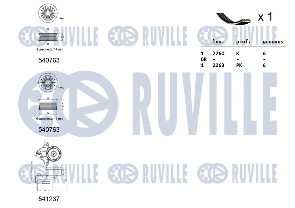 Комплект ременя генератора MB Sprinter/Vito CDI 98- (6PK2260) RUVILLE 570183