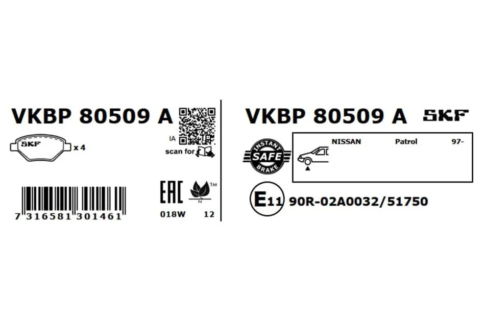 Колодки гальмівні (передні) Nissan Patrol GR V 97- SKF VKBP80509A