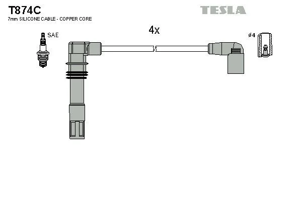 Комплект кабелiв запалювання TESLA T874C