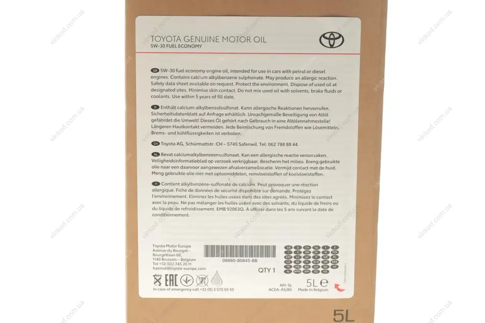Олива Motor 5W-30 FE (Bag in Box), 5л (шт.) TOYOTA 08880-80845-BB