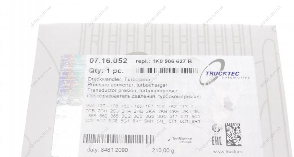 Клапан управління турбіни AUTOMOTIVE TRUCKTEC 07.16.052