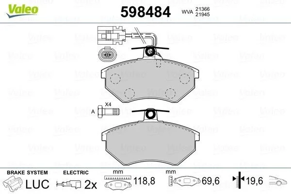 Гальмівні колодки, дискове гальмо (набір) Valeo 598484