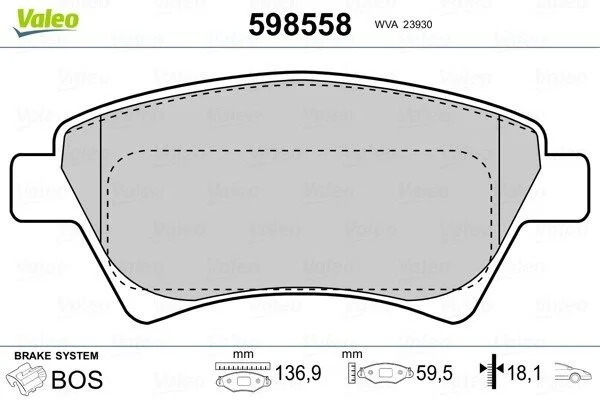 Гальмівні колодки, дискове гальмо (набір) Valeo 598558