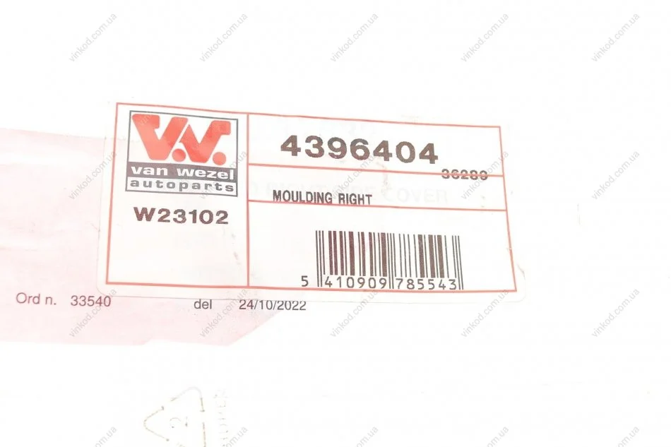 Молдинг кузова (R) Opel Vivaro/Renault Trafic 14- Van Wezel 4396404