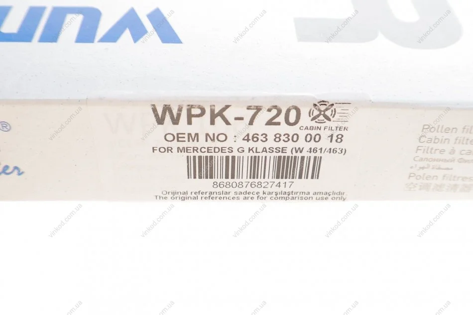 Фільтр салону WUNDER WUNDER FILTER WPK 720