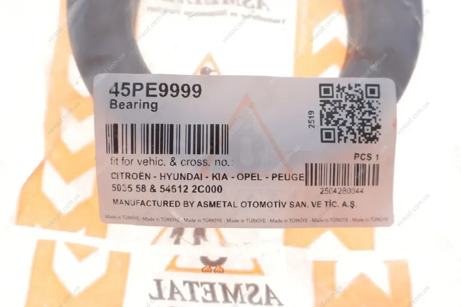 Підшипник опори амортизаційної стійки ASMETAL 45PE9999