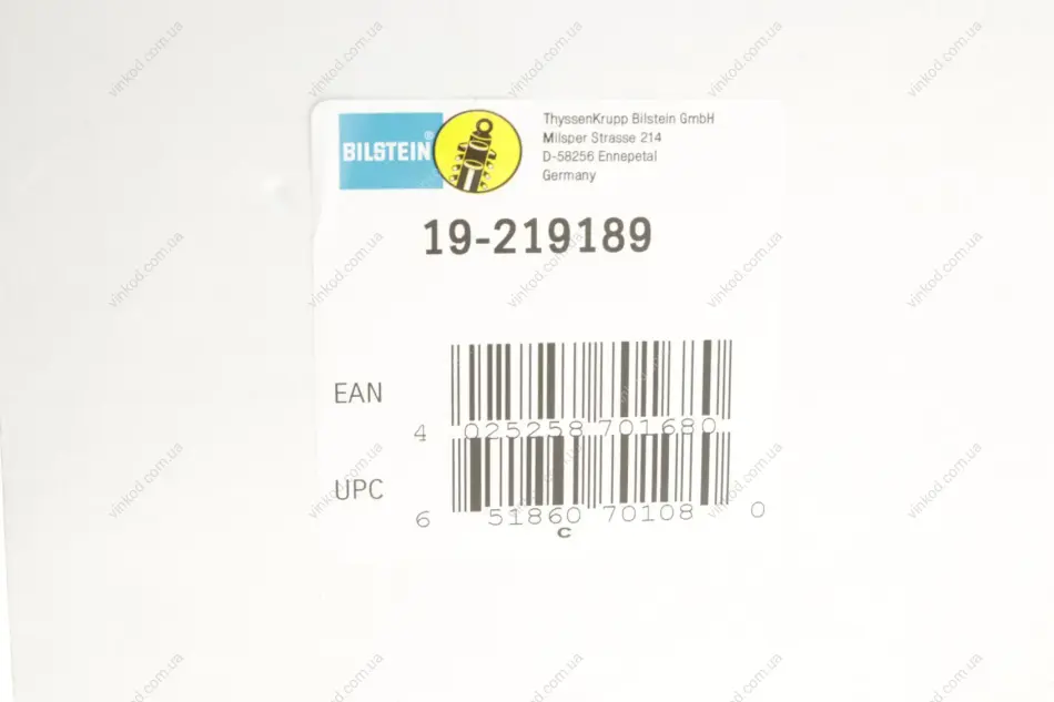 - BILSTEIN 19-219189 підходить на авто: