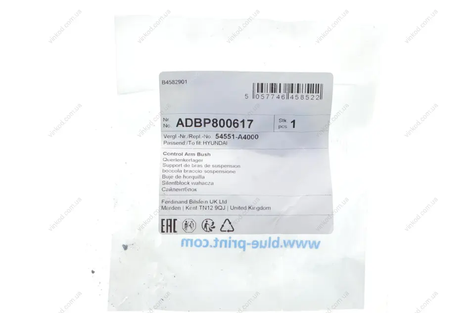 Сайлентблок важеля BLUE PRINT ADBP800617