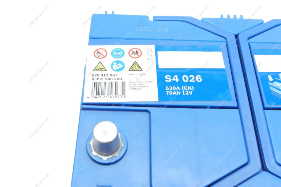 Акумулятор 70Ah-12v (S4026) (261x175x220),R,EN630(Азія) BOSCH 0 092 S40 260