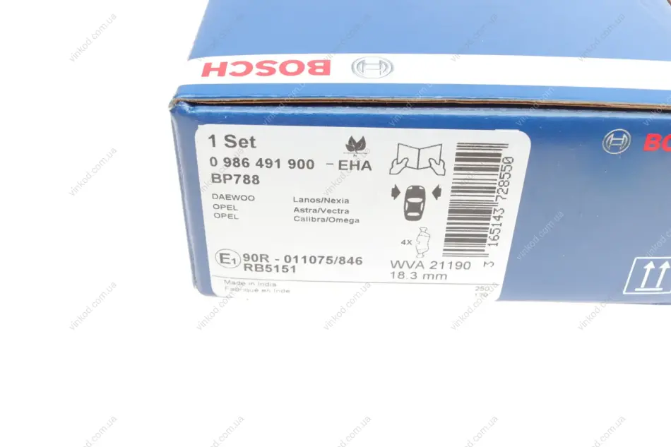 Гальмівні колодки дискові CHEVROLET Lanos/DAEWOO Nexia/Espero/OPEL Astra/Calibra/Vectra -02 BOSCH 0 986 491 900
