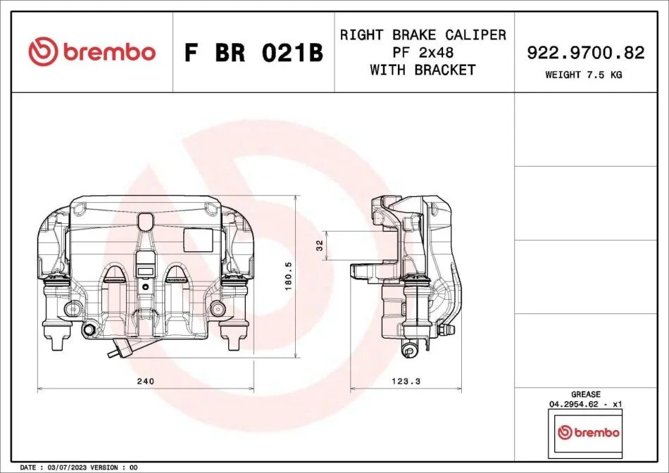 ZACISK HAMULCOWY IVECO DAILY VI VAN 03/14- / IVECO DAILY VI PLATFORM/CHASSIS 03/14- / IVECO DAILY V VAN 09/ SZT BREMBO FBR021B