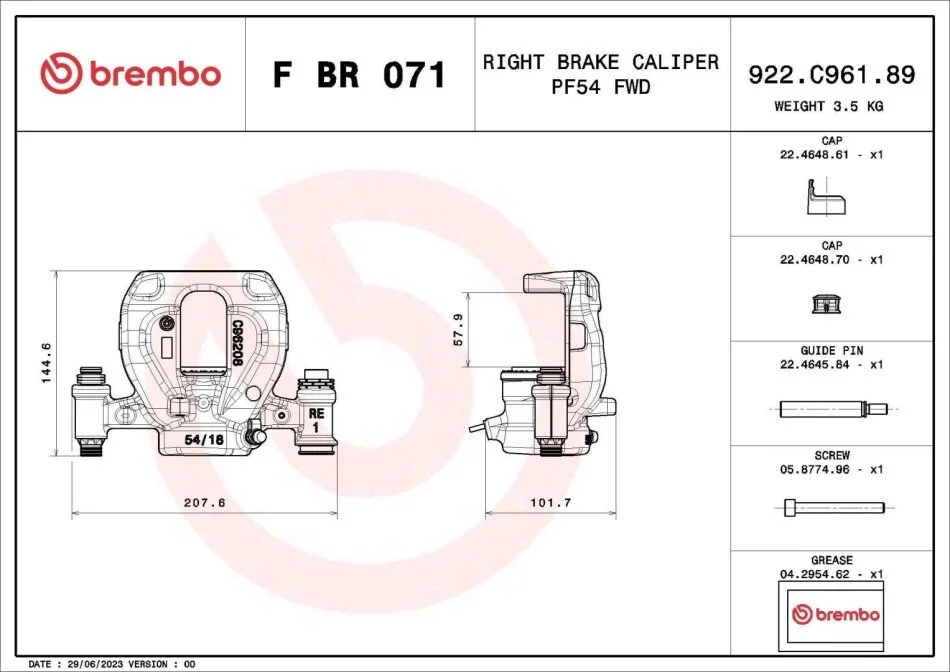 Гальмівний дисковий супорт задн Прав (новий) MERCEDES SPRINTER 3,5-T (B907, B910), SPRINTER 3-T (B910), SPRINTER 3-T (B910, B907), SPRINTER 4-T (B907, B910) 2.0D/2.2D/Electric 02.18- BREMBO FBR071