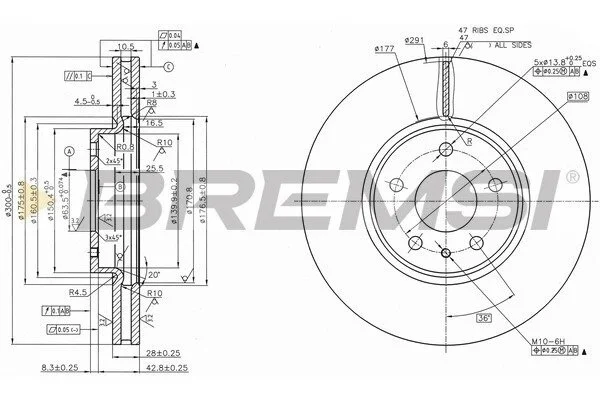 Гальмівний диск перед. Ford Mondeo V 14- (300x28) BREMSI CD8337V