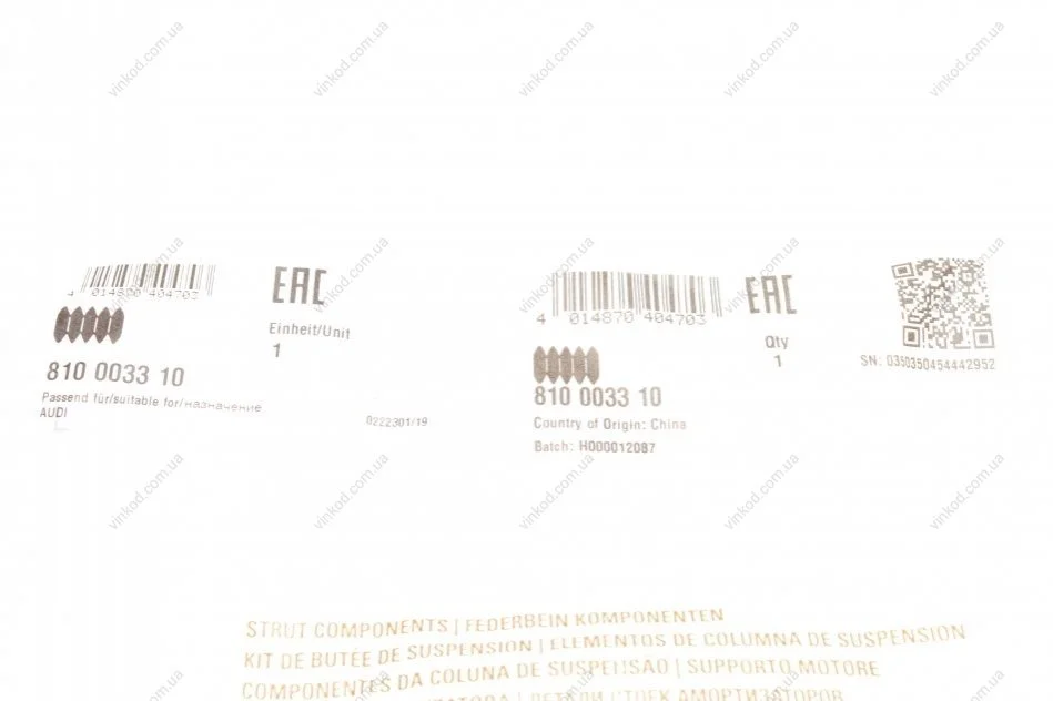 - FAG 810 0033 10 підходить на авто: