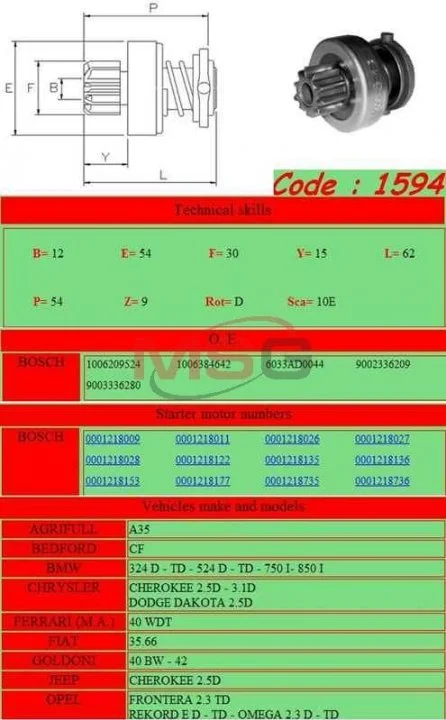 Бендікс стартера GHIBAUDI MARIO 1594